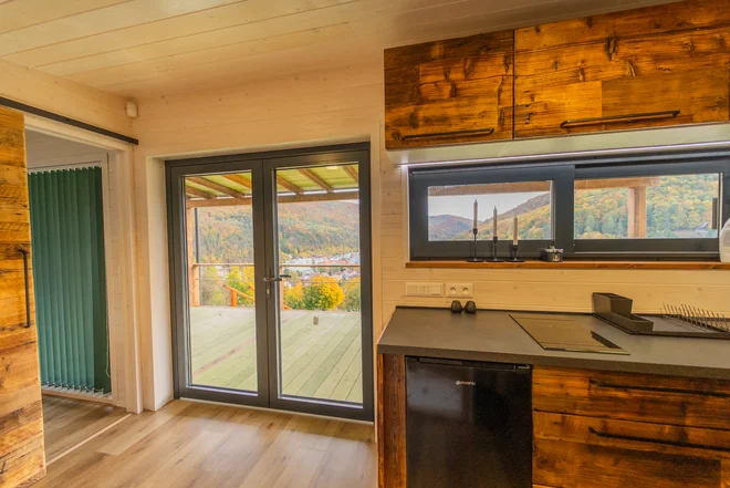 Domček pozostáva z 1 spálne s manželskou posteľou aj výhľadom priamo na okolitú prírodu a vybavenej kuchynky s chladničkou, v ktorej sa nachádza rozkladacia posteľ. V kúpeľni s toaletou je sprchový kút. Dostupná je tiež detská jedálenská stolička a hračky.Dieťa do 2,99 rokov s nárokom na lôžko s vami môžu pobyt absolvovať zdarma.