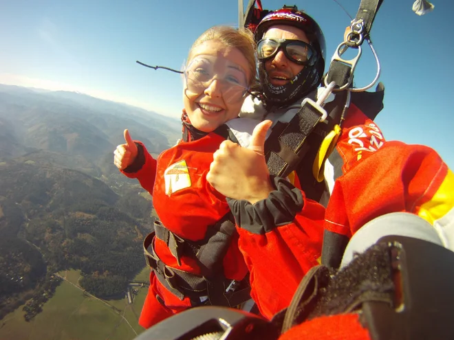 Poznámka: Potrebný výstroj na zoskok – kombinézu a okuliare dostanete.