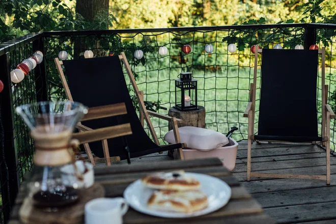 Vonku je sprcha a suchá toaleta, v sudoch budete mať nachystaných 30 litrov vody. Variť si môžete na plynovom variči alebo vonku rozložiť oheň (drevo je už pripravené), nechýba však ani gril. Jednoducho sa tu budete mať kráľovsky, a to ešte nekončíme. Máte chuť na rannú jogu alebo popoludňajšiu meditáciu? V domčeku nájdete všetko, čo na to môžete potrebovať. Hlavne už spomínaný pokoj.