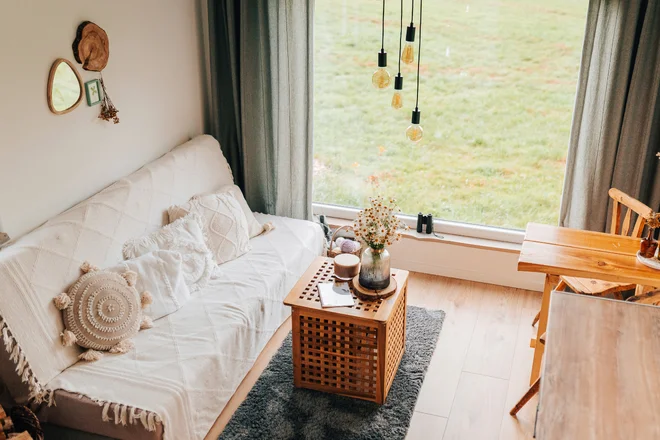 Veľa času však určite budete tráviť vonku, kde sa nachádza príjemné posedenie a malá záhradka s rôznymi bylinkami a sezónnou zeleninou. K dispozícii budete mať aj jednorazový gril, takže nezabudnite pribaliť aj mäso, zeleninu či špekáčiky. Zakladanie klasického ohňa je však pri tiny house prísne zakázané. A čo robiť, ak vonku zúri búrka? V chatke nájdete karty, košík s pletením aj malý projektor, do ktorého jednoducho pripojíte flashdisk či notebook a môžete sledovať obľúbený film.